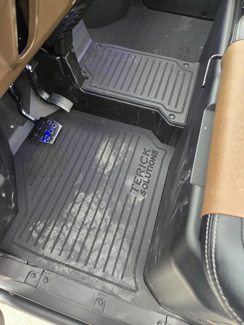 Our Terick floor mats are 100% made in the USA. We source the recycled rubber from a company right here in Wisconsin, just a couple hours from our shop. Adding our floor mats to your UTV will not only feel great on your feet and add extra grip, but they will also add a much needed layer of insulation to the plastic floor. The floor mats will insulate the floor from not only noise, but hot and cold temps as well. And don't forget the cargo mat. Finally, a solution to prevent all of your stuff from sliding around in the box!